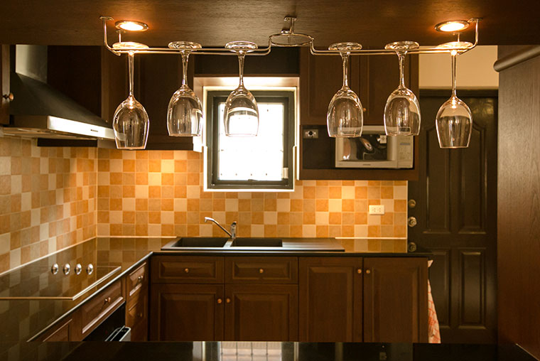 Elektrische kookplaats, Extra brede koelkast met diepvries, Dubbele wasbak, Sfeerverlichting
